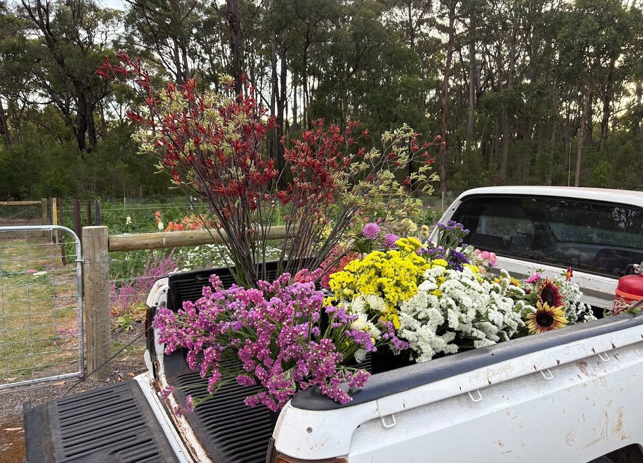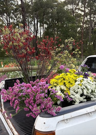 Our small-scale flower farm is nestled on a picturesque 11-acre property in Barongarook, a charming rural town in Victoria, Australia. Surrounded by the natural beauty of the countryside, we dedicate ourselves to cultivating a diverse range of stunning blooms, with a special focus on proteas, native flowers, and a delightful selection of spring and summer annuals.